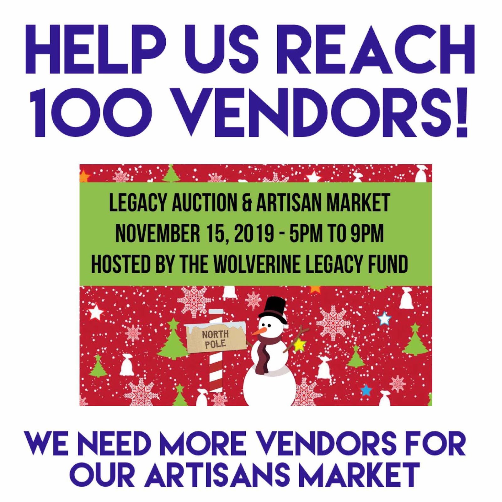 We are looking for vendors to participate in Artisan Market on November 15!  For more information, please email Tracy at whslegacyvendors@gmail.com